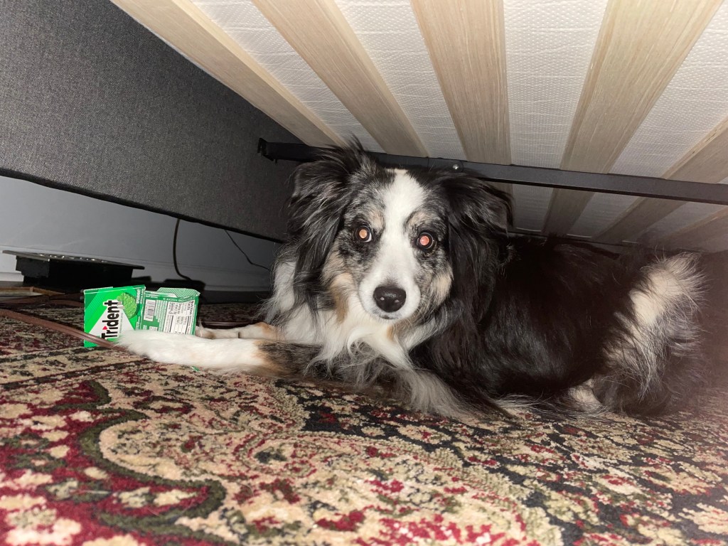 Boomer had very little mischief. About 6 months after being adopted by Sonya and Brendan, Boomer started retrieving a single tissue from the the trash and leaving it in the middle of the floor for all to see. It was a valiant, but subtle, attempt to exercise mischief, as if he really didn’t know how to do mischief. His humans would cheer him on for trying. Eventually he took it up a notch and started stealing gum and hiding it under the bed, although he would never eat the gum.