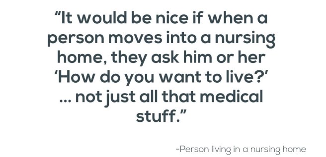 Yes, we need to really think about HOW we ask people in nursing homes “How do you want to live?”, and WHAT it would really look like if we focused on LIVING in nursing homes.